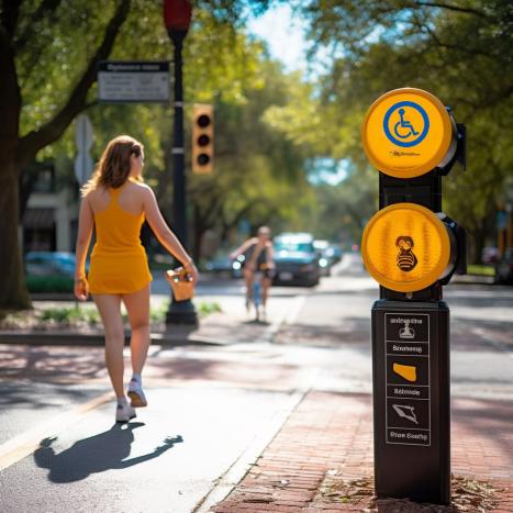 Ampelanlage mit barrierefreien Bedienelementen für Fußgänger.