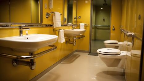 Für Sanitäreinrichtungen, einschließlich Waschräume und WC-Kabinen, stellen wir sicher, dass Sanitärobjekte, wie Waschbecken, WC-Schüsseln, Spiegel und Regale, in körpergerechten Montagehöhen installiert werden, wie in der Richtlinie VDI 6000 Blatt 6 empfohlen. Unsere Waschbecken haben eine Einbauhöhe zwischen 0.55 und 0.65 cm, und WC-Schüsseln werden in einer Höhe von 0.35 cm positioniert, ohne den Toilettensitz. Speziell für Kinder im Rollstuhl bieten wir mindestens ein Waschbecken in einer Höhe von 0.70 m oder ein höhenverstellbares Waschbecken an. Zusätzlich stellen wir Toilettensitzerhöhungen für WC-Schüsseln zur Verfügung.