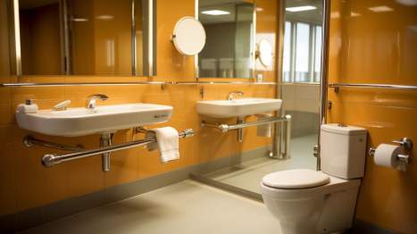 Hygienische Einrichtungen mit barrierefreiem Design, die für alle Benutzer ein sauberes und komfortables sanitäres Erlebnis gewährleisten.